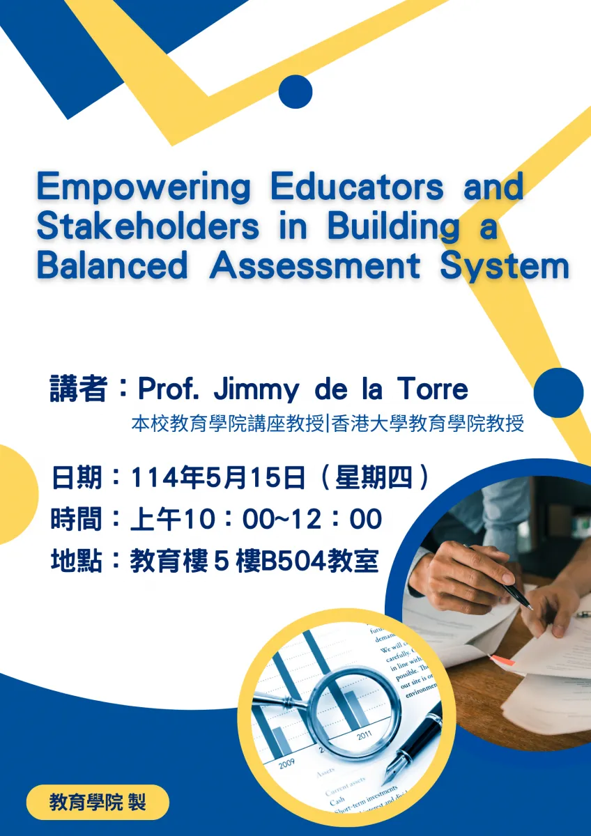 (一)講題:Empowering Educators and Stakeholders in Building a Balanced Assessment System